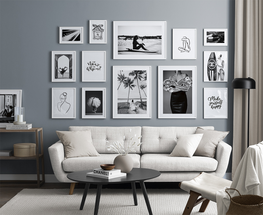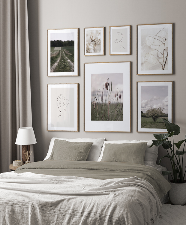 We add new gallery walls all the time according to the season and the latest interior design trends. Buying new designs and putting together new ensembles allows you to easily and affordably change your decor to reflect what you’re into at the moment.We create customised gallery walls based on rooms and interior styles. For example, you can buy a picture collage for a kitchen with gorgeous photographic designs for a more modern interior style, or you can get a stylish gallery wall for a living room with minimalist illustrations that fit perfectly into a Scandinavian interior design style.