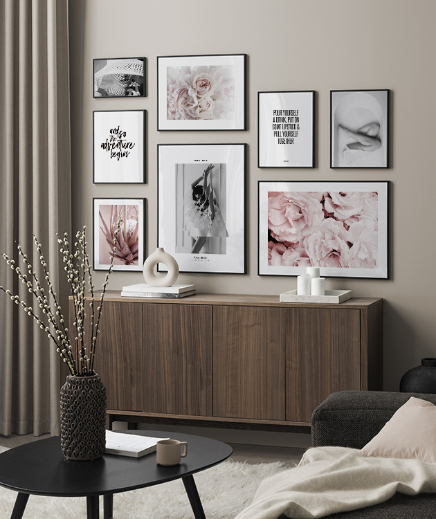In our Inspiration section you can view different rooms and styles to find a gallery wall that’s perfect for you! Get inspiration for how you can combine different posters to create a stylish gallery wall in your home.