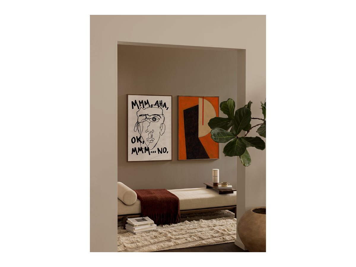 When curating bold art, think scale and harmony. Don’t shy away from size – larger pieces instantly elevate your interior and make a space feel more intentional. Pair two artworks with shared colours or themes to create visual flow or let one powerful print stand alone for maximum impact.