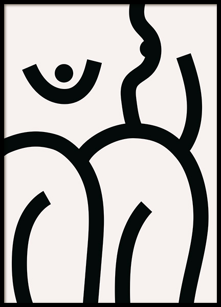 Handpicked design Abstract illustration with boobs drawn with bold, black strokes on a light beige background. A graphical illustration is a must for each home we believe! This abstract design fits perfectly in a gallery wall with other illustrations or some photo art. Or better, pair it with Bold Body No1 for a perfect pair!