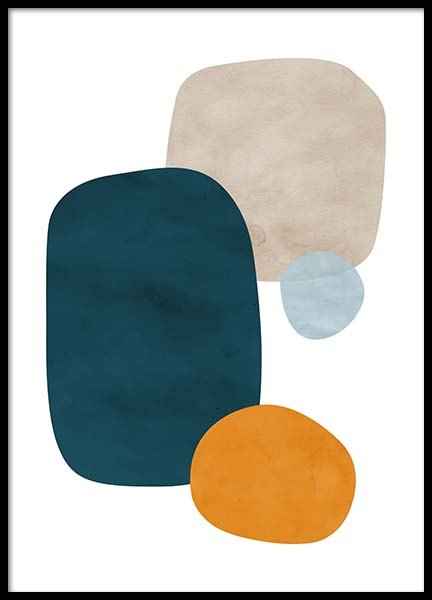 Handpicked design Painting with a cluster of shapes in various shades of brown and blue on a beige background. By choosing prints in earthy and calm colours your home will feel at ease! This print matches perfectly with Browns and Blues No2.