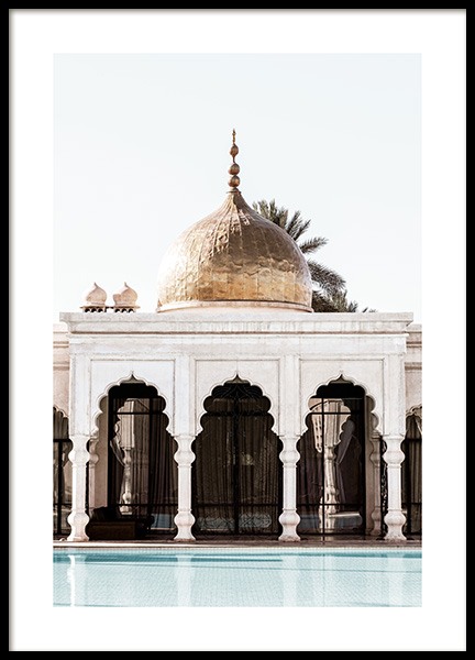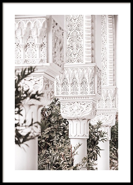Handpicked design Photograph of a white, oval arch with hand crafted details and a black door. The mesmerizing details make us amazed by Marrakech's architecture, and all the history it holds. This print is part of Studio Amara, a photo collection shot by Desenio Design Studio in Marrakech.