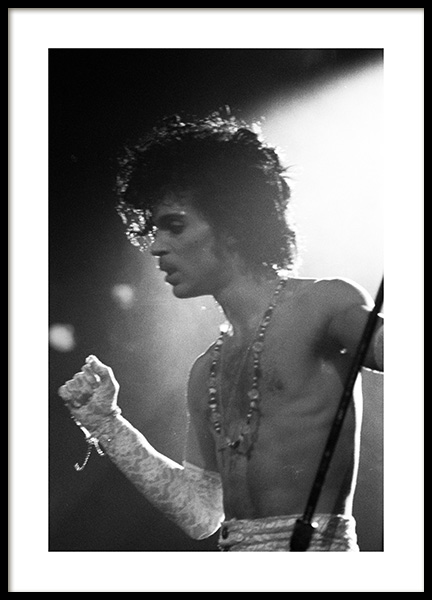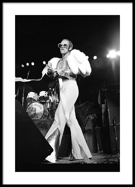 Handpicked design Iconic photograph in black and white of Freddie Mercury from Queen, dressed in white while holding his hand in the air. If you have a favourite icon you might just find it amongst our Iconic photos!