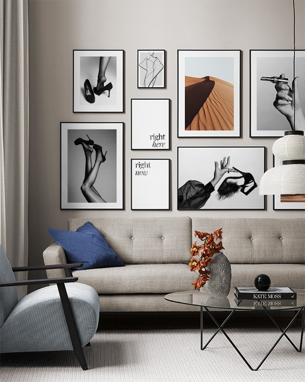 Decorate with trendy posters and prints evincing fashion. Posters of famous designers, cool leopard prints, and from photo shoots make for chic gallery walls and inspired interior styles.