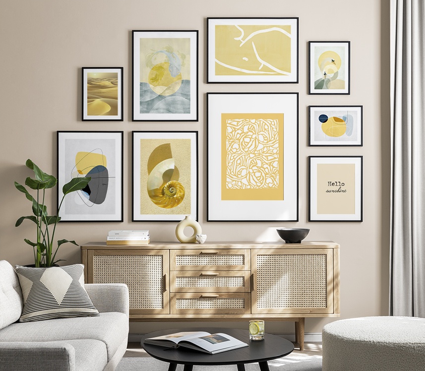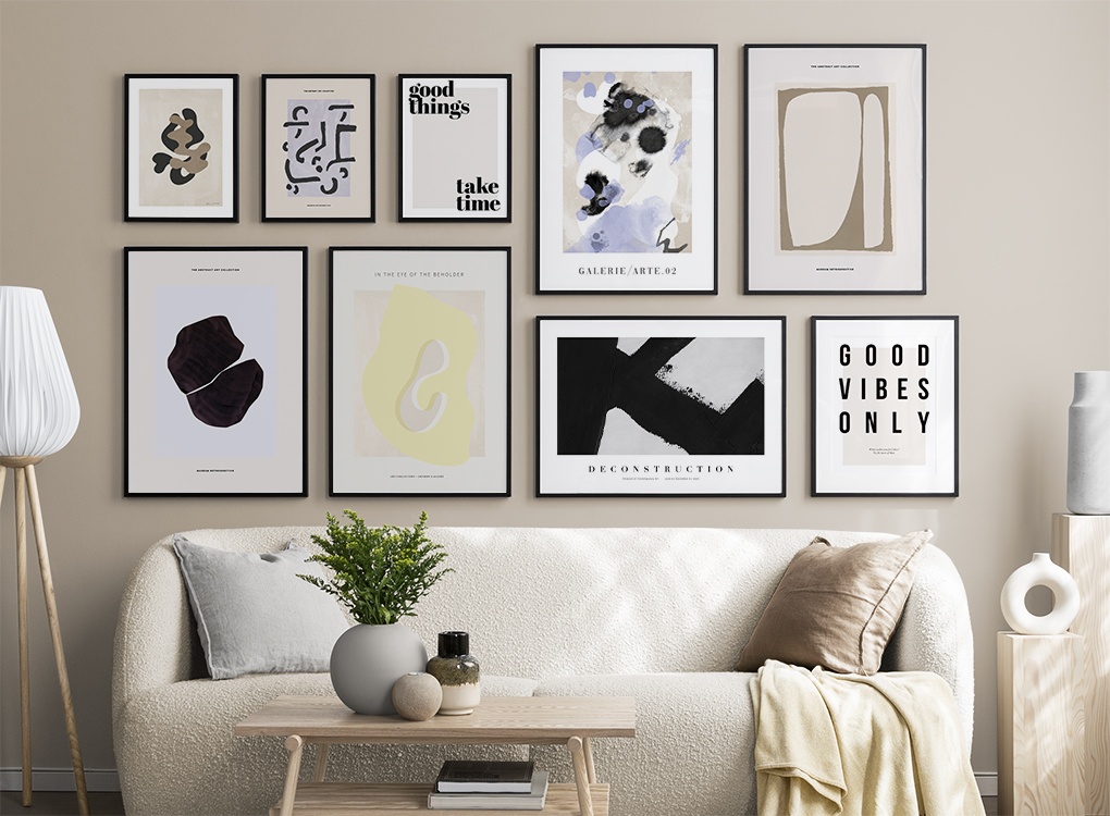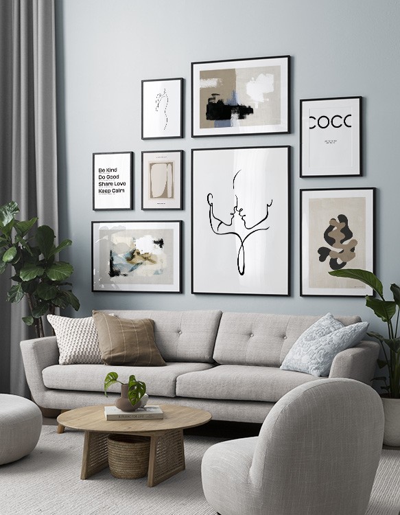 Graphic prints and posters adds a modern and artistic touch to your home, and our gallery walls with graphic prints can be put in all rooms of your home. You're the only one who can set the limit, so perhaps this is the time to step out of your comfort zone and choose a graphic gallery wall that's a bit spaced out?