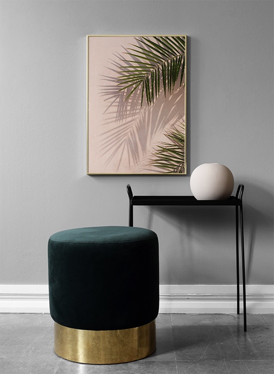 Handpicked design The botanical trend in interior decorating is more fashionable than ever and this poster of green palm fronds reflects that fact perfectly. This poster of green leaves against a pink background creates a wonderful contrast and makes for a nice interior detail for anyone who wants to decorate their home with more green plants. A perfect match for a Scandinavian-style interior. Check out our Floral category to find similar posters!