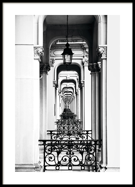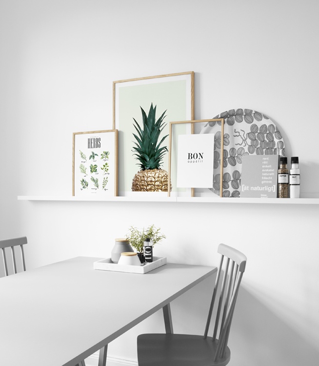 Poster of gold pineapple on a light green background. Stylish and trendy. Works with many decorating styles. The poster has a built-in mount which elegantly frames the image.