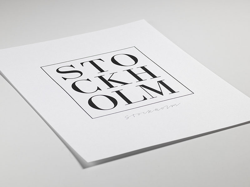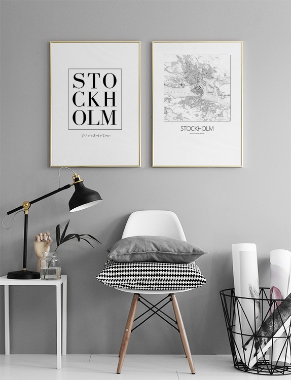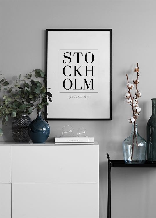 Handpicked design Modern black and white poster with the text Stockholm. Clean and simple in its design and of course super stylish on the wall. Looks great by itself or together with most of our other black and white prints in an art collage. Visit our inspiration rooms to get fun wall décor ideas!