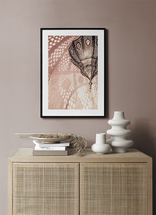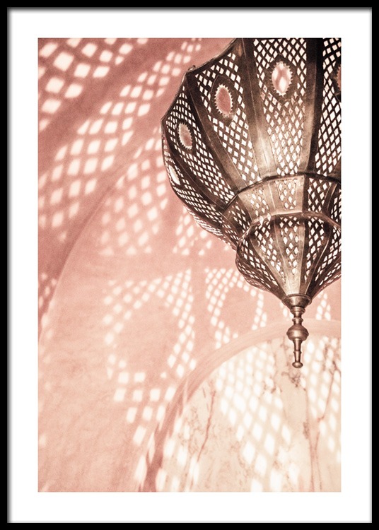 From £9.07 Photograph of a metal lamp reflecting light in a pink room. Find your new favourite print amongst photo art from Marrakech! This print is part of Studio Amara, a photo collection shot by Desenio Design Studio in Marrakech.