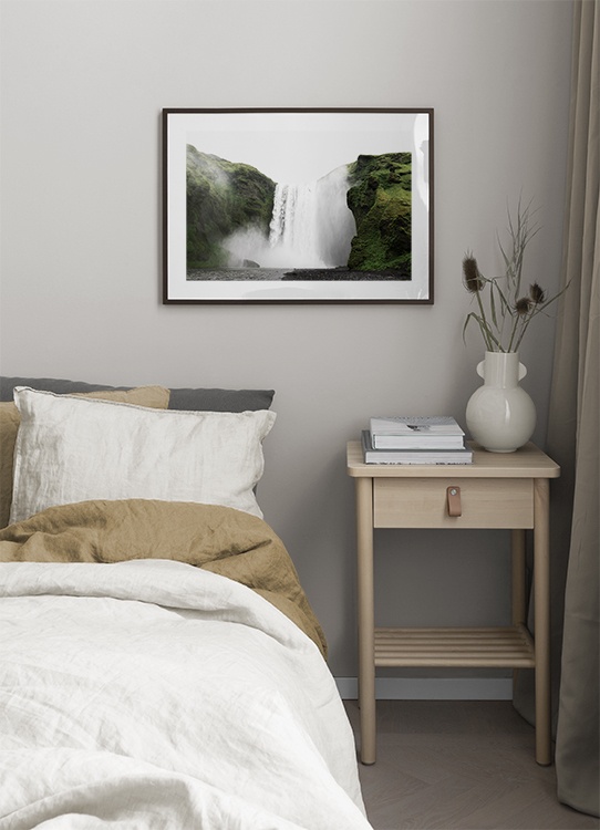 Handpicked design Photograph of the waterfall Skogafoss in Iceland. Join Desenio Design Studio on a dreamy trip to Iceland and the northern lights, a place where you can rest your mind. Studio Elements is a collection from Iceland, by Desenio.