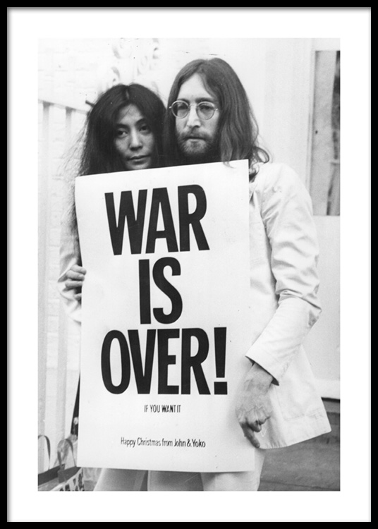 From £11.52Photograph in black and white of the icons John Lennon and Yoko Ono holding a War is Over poster. The image is one the most classic photos in the world, and was taken during John Lennon´s and Yoko Ono´s peace campaign in 1969 with the message 'War is Over! If you want it'.
