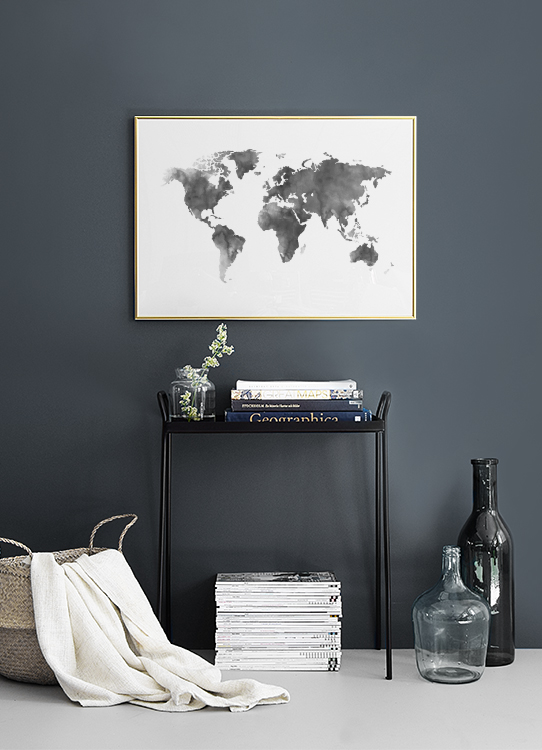 £17.47World map painted in grey watercolour on a white background. This popular print in monochrome colours fits perfectly in any gallery wall, and it's also a great fit for kids rooms! Posters are not only something decorative, they can also serve an educational purpose. Find more in our Maps and Cities category!