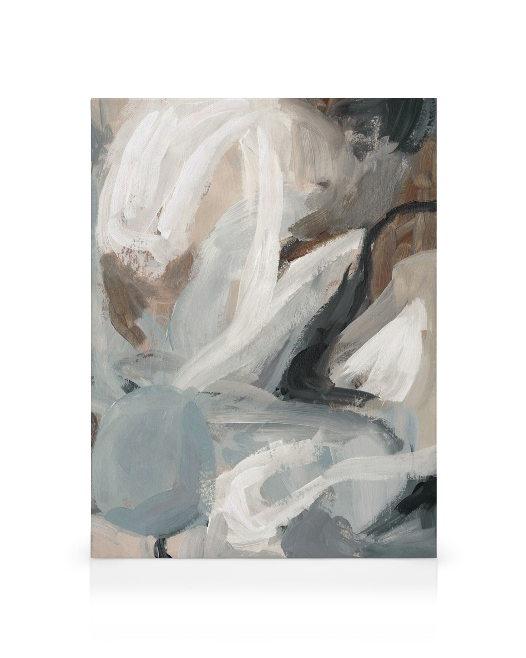 Abstract canvas prints with soft swirls of white, grey, brown and light blue. A calming canvas to decorate your walls with!