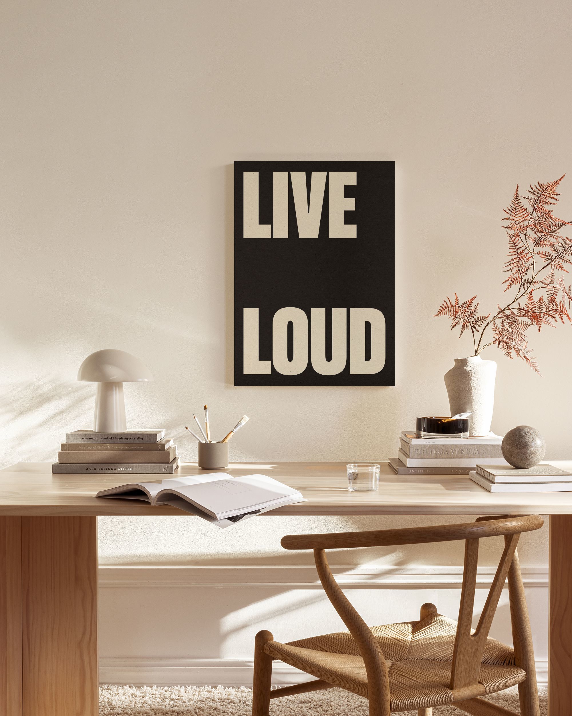 Live Loud: motivational text canvas in beige and black colours. Perfect canvas to inspire and motivate you every day.